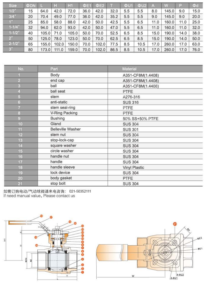 RP-210-DN15,RP-211-DN20,RP-212-DN25,RP-220-DN32,RP-221-DN40,兩片式球閥 |