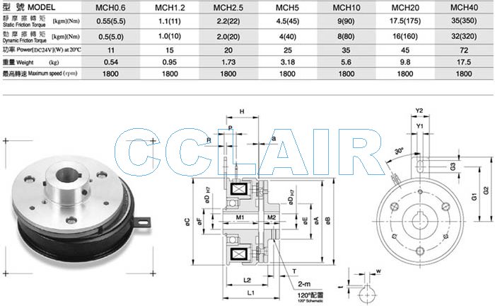 詳細信息 MCH0.6,MCH1.2,MCH2.5,MCH5,MCH10,MCH20,MCH40,電磁式離合器