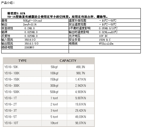 詳細(xì)信息 YD16-50K,YD16-100K,YD16-150K,YD16-3T,YD16-5T,YD16-10T,setech稱重傳感器