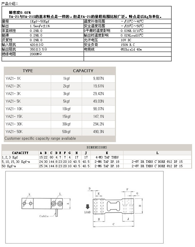 詳細(xì)信息 YA21-1K,YA21-2K,YA21-3K,YA21-5K,YA21-10K,YA21-15K,setech稱重傳感器