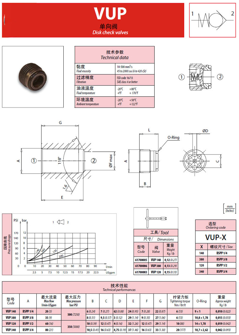 VUP140,VUP120,VUP340,VUP380,單向閥