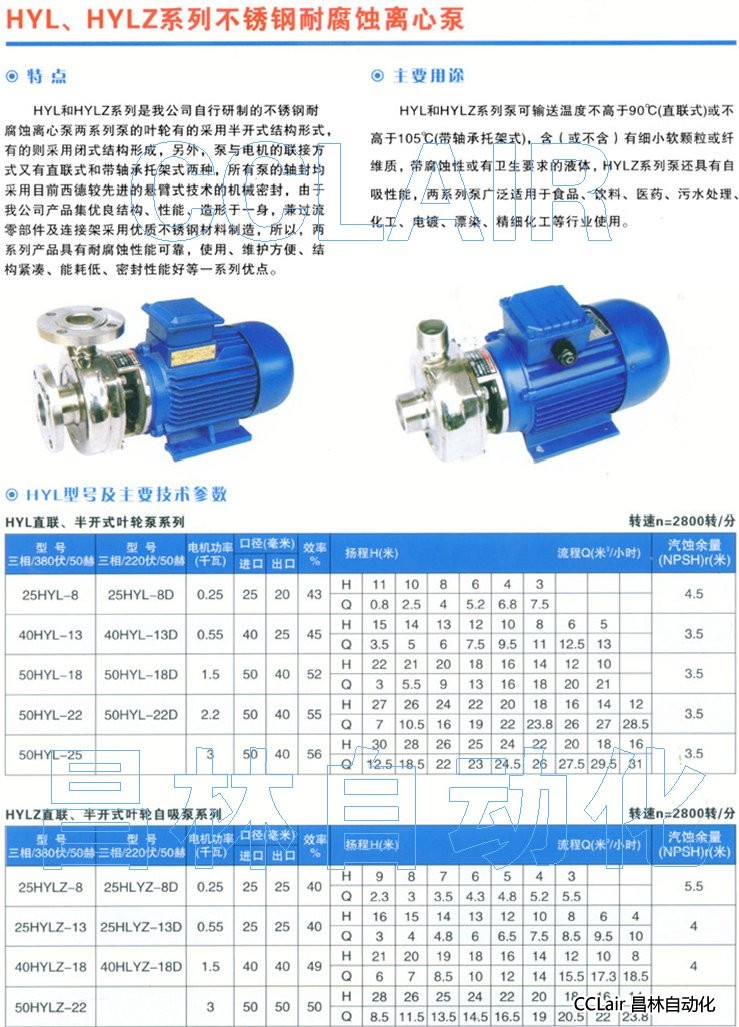 25HYL-8,40HYL-13,50HYL-18,50HYL-22,50HYL-25,不銹鋼耐腐蝕自吸離心泵
