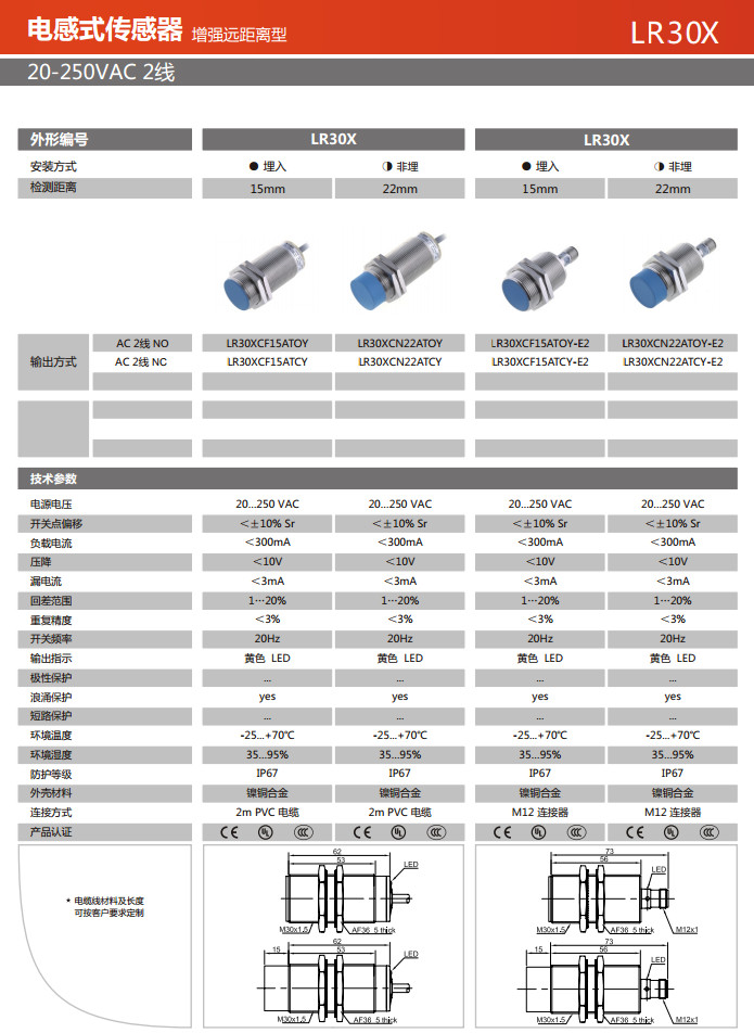 LR30XCF15ATOY,LR30XCF15ATCY,LR30XCN22ATOY,LR30XCN22ATCY,LR30XCF15ATOY-E2,電感式傳感器