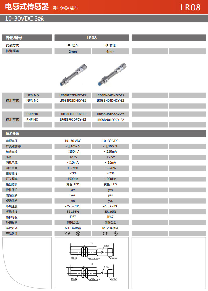 詳細信息 LR08BF02DNOY-E2,LR08BF02DNCY-E2,LR08BN04DNOY-E2,LR08BN04DNCY-E2,LR08BF02DPOY-E2,電感式傳感器