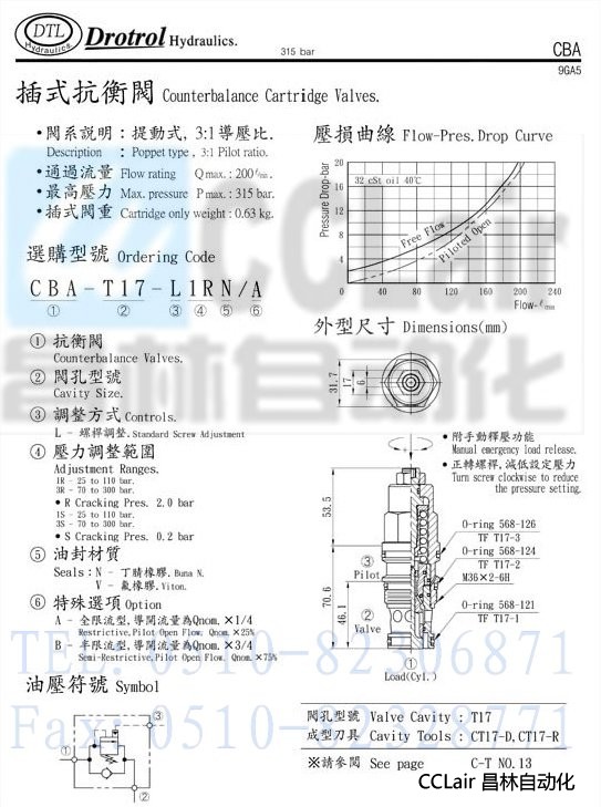 CBA-T17-L1SV/A,CBA-T17-L1SV/B,CBA-T17-L3SV/A,CBA-T17-L3SV/B,磐龍插式抗衡閥
