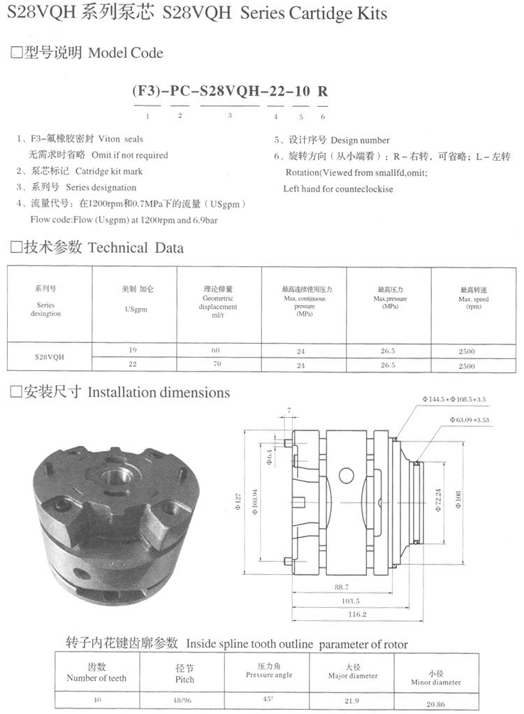 詳細信息 PC-S28VQH-22-10R,PC-S28VQH-19-10R,PC-S28VQH-22-10L,PC-S28VQH-19-10L,泵芯