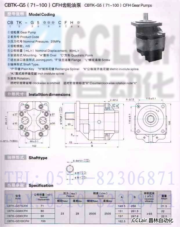 » CBTK-G571CFH,CBTK-G580CFH,CBTK-G590CFH,CBTK-G5100CFH,齒輪油泵