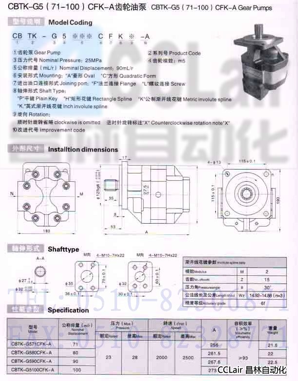 詳細(xì)信息 CBTK-G571CFK-A,CBTK-G580CFK-A,CBTK-G590CFK-A,CBTK-G5100CFK-A,齒輪油泵