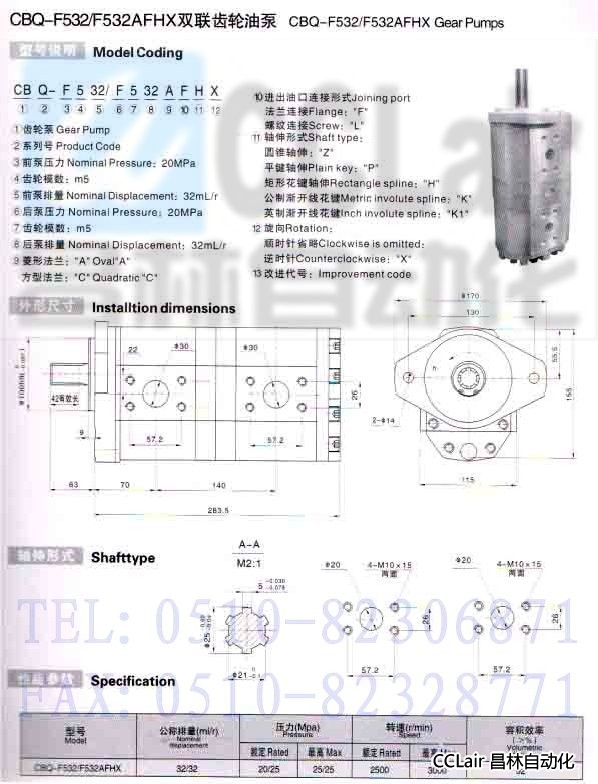 詳細(xì)信息 CBQ-F532/F532AFHX,雙聯(lián)齒輪油泵