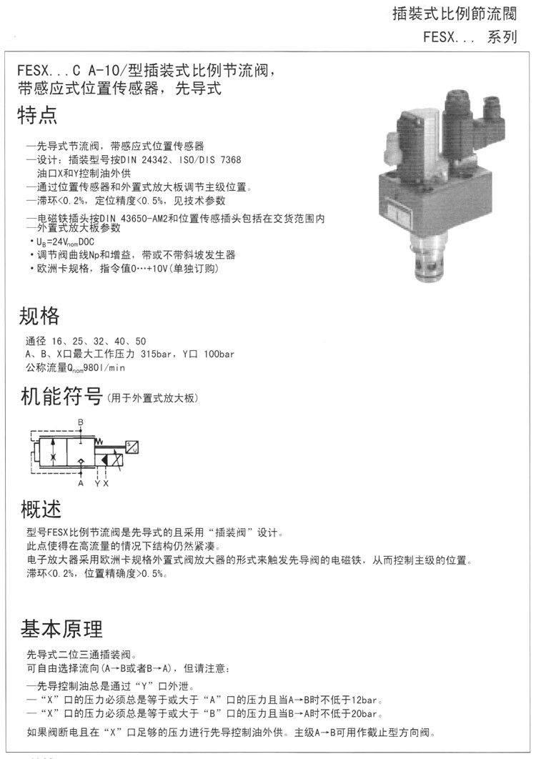 FESX16,FESX25,FESX32,FESX40,FESX50,FESX16CA-1X/125LZ4M,FESX25CA-1X/210LZ4M,插裝式比例節(jié)流閥