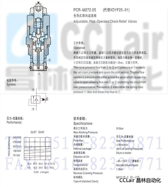» PCR-M272.0S,先導(dǎo)式單向溢流閥