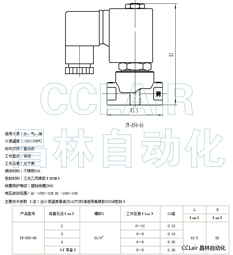 2W-050-08,氣、液微型電磁閥
