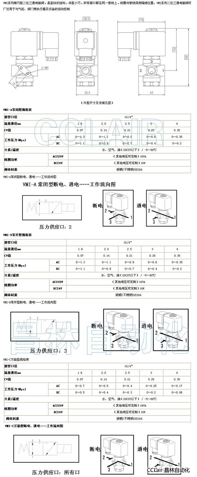 VMI-A常閉型,VMI-B常開型,VMI-C萬能型,電磁閥