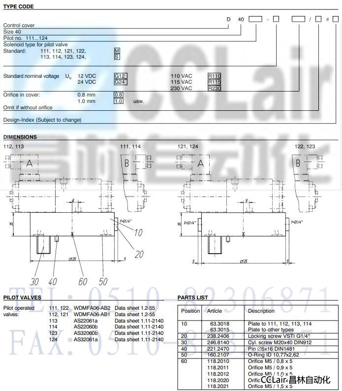 D40122M,D40124S,帶換向功能的2位2-通插裝閥