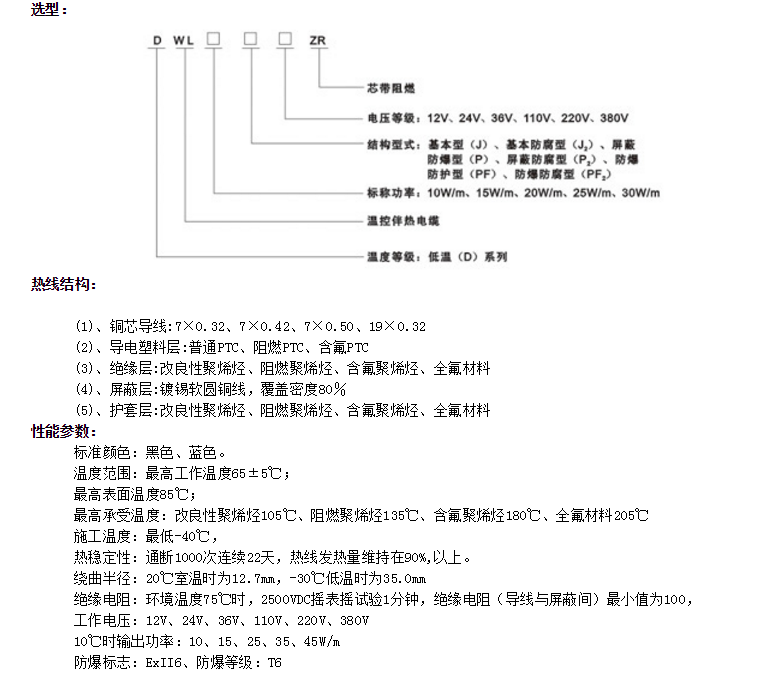 DWL(DXW/DBR/DKW/DBW/DWK/DHR/LV/DZL/ZKWD)低溫溫控伴熱電纜(自限溫電伴熱帶)-相對(duì)應(yīng)國(guó)外型號(hào)瑞侃BTV和賽盟BSX系列