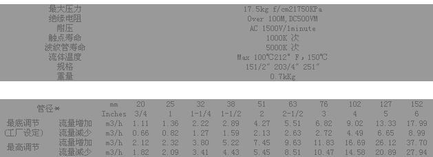 該產(chǎn)品的微動(dòng)開(kāi)關(guān)采用日本歐姆龍公司產(chǎn)品,用于測(cè)量流經(jīng)管道的液體流動(dòng)狀態(tài)。如:水、乙稀、乙二醇等對(duì)銅無(wú)腐蝕作用的液體。, 可裝于水平或垂直管道上,但開(kāi)關(guān)兩側(cè)必須有不少于管徑5倍的直線長(zhǎng)度5、 本體為全不銹鋼材質(zhì)6、 歐洲CE認(rèn)證