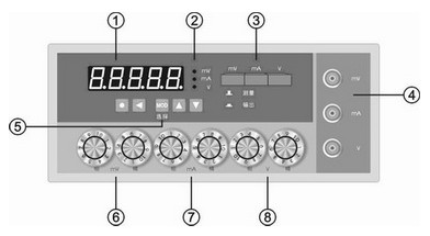⑤ 顯示檔位選擇 ⑥ mV檔輸出調(diào)整