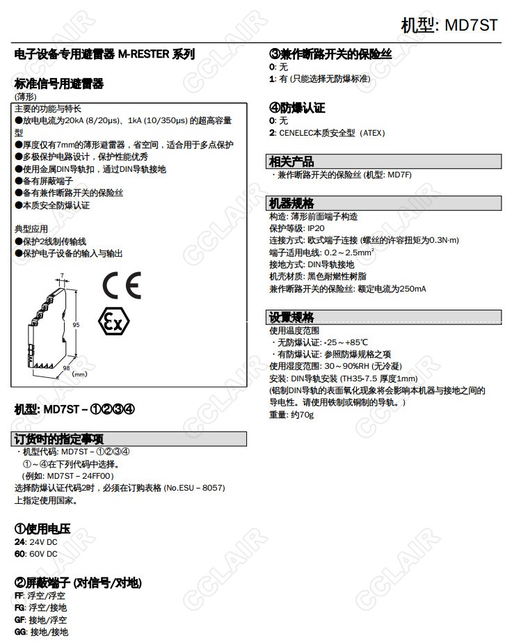 您當(dāng)前的位置:首頁 » 供應(yīng)產(chǎn)品 » MD7ST,MD7ST-24FF00,MD7ST-24FF,MD7ST-60FF,MD7ST-24FG,MD7ST-60FG,4-20mA直流、脈沖信號用 超薄型避雷器