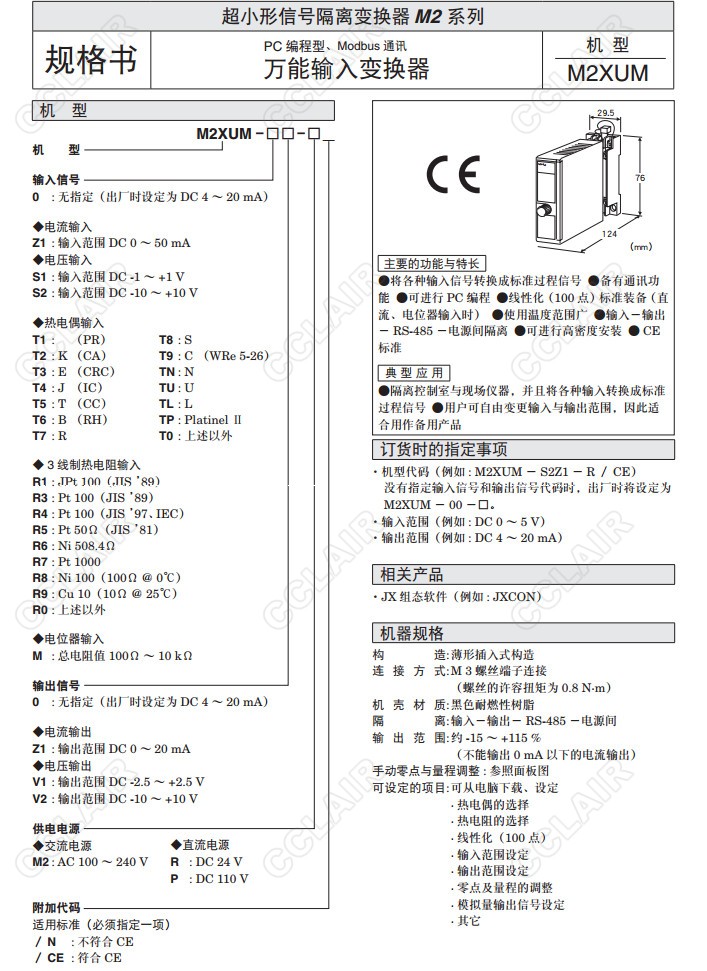 M2XUM,M2XUM-Z1 Z1,M2XUM-S1 Z1,M2XUM-S2 Z1,M2XUM-Z1 Z1,萬能輸入變換器(PC編程型、Modbus通訊)