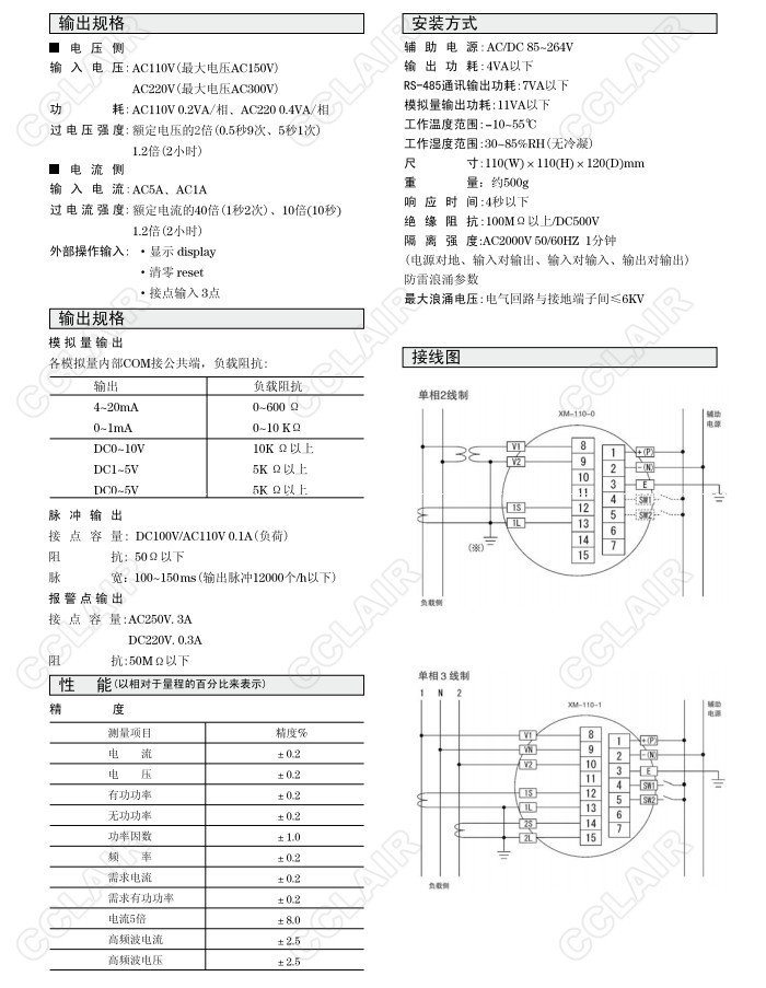 XM-110,XM-110-0 11,XM-110-1 11,XM-110-2 11,XM-110-3 11,XM-110-4 11,綜合電量變換器(帶顯示)