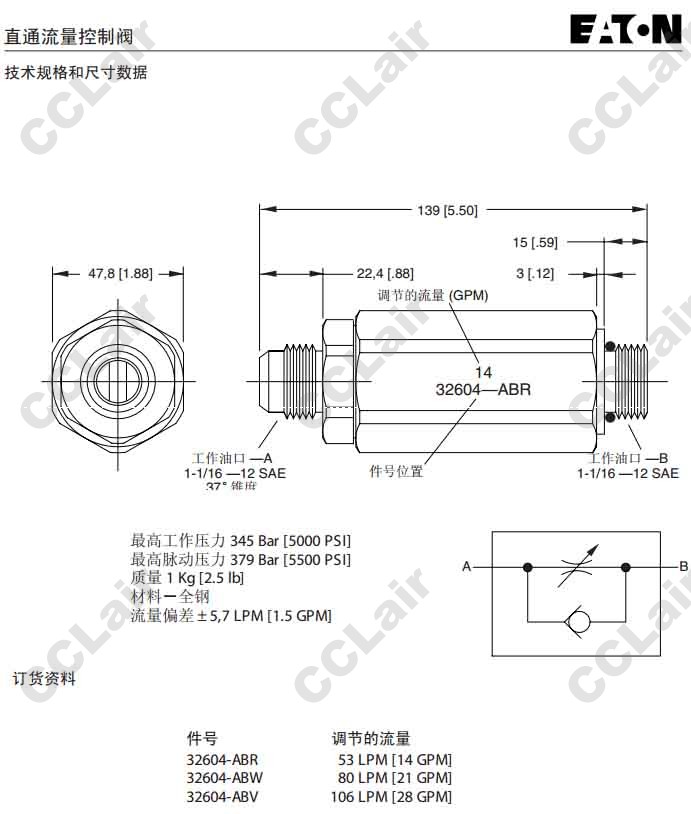 32604-ABR,32604-ABW,32604-ABV,直通流量控制閥,威格士-Vickers