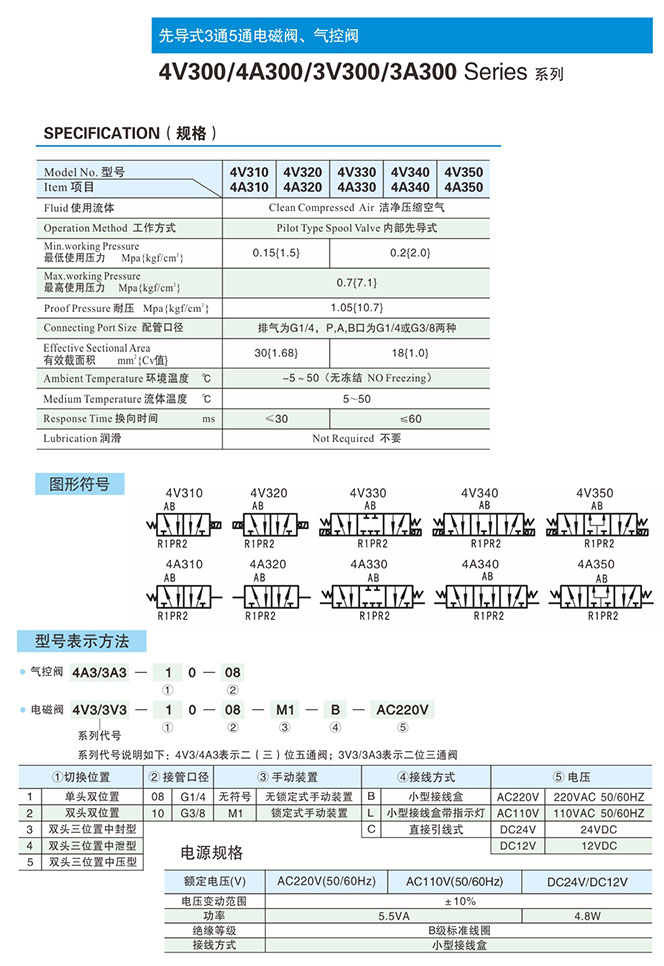 4V330-08,4V340-08,4V350-08,3V210-10,3V220-10,3V230-10,4V330-08-L,先導式3通5通電磁閥