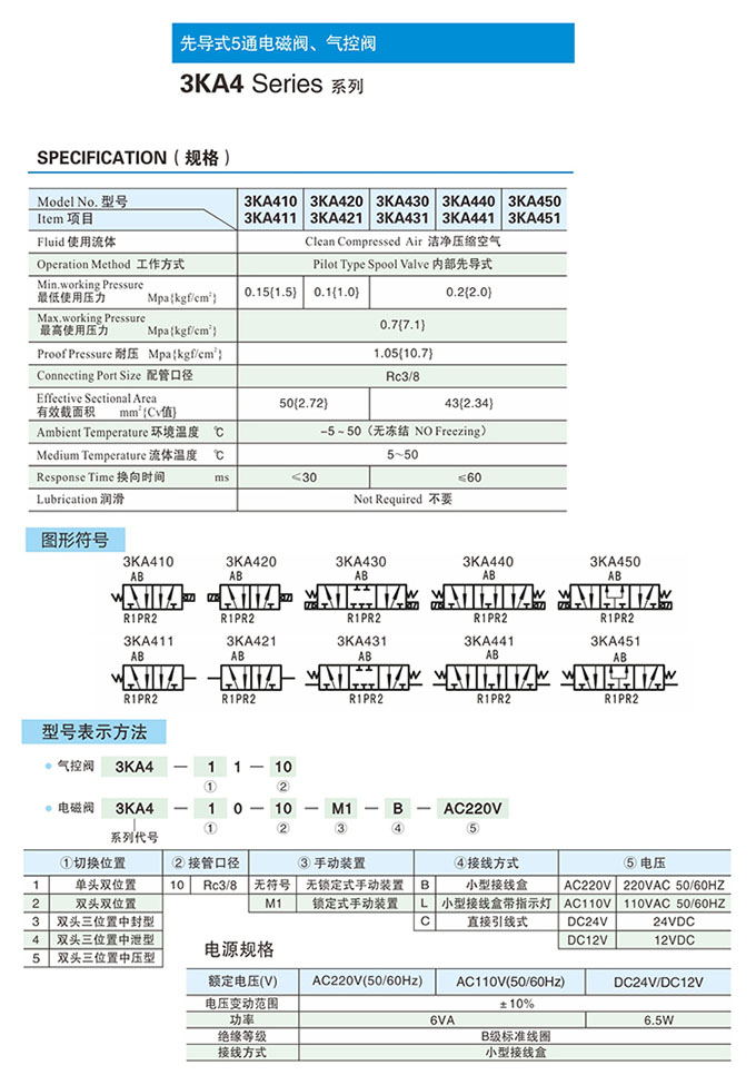 3KA410-10,3KA420-10,3KA430-10,3KA440-10,3KA450-10,3KA410-10-B,先導(dǎo)式5通電磁閥