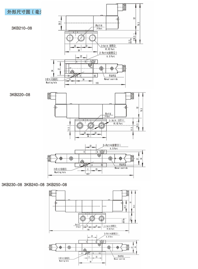 詳細(xì)信息 3KB210-08,3KB220-08,3KB230-08,3KB240-08,3KB250-08,3KB210-08-B,先導(dǎo)式五通電磁閥