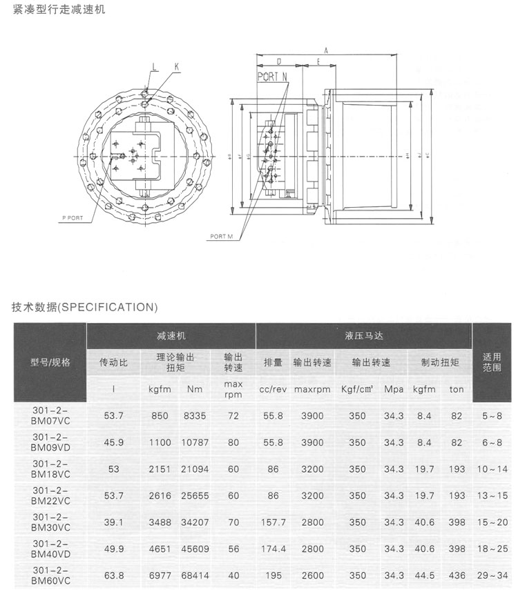 301-2-BM07VC,301-2-BM09VD,301-2-BM18VC,301-2-BM22VC,301-2-BM30VC,301-2-BM40VDVC,緊湊型行走減速機