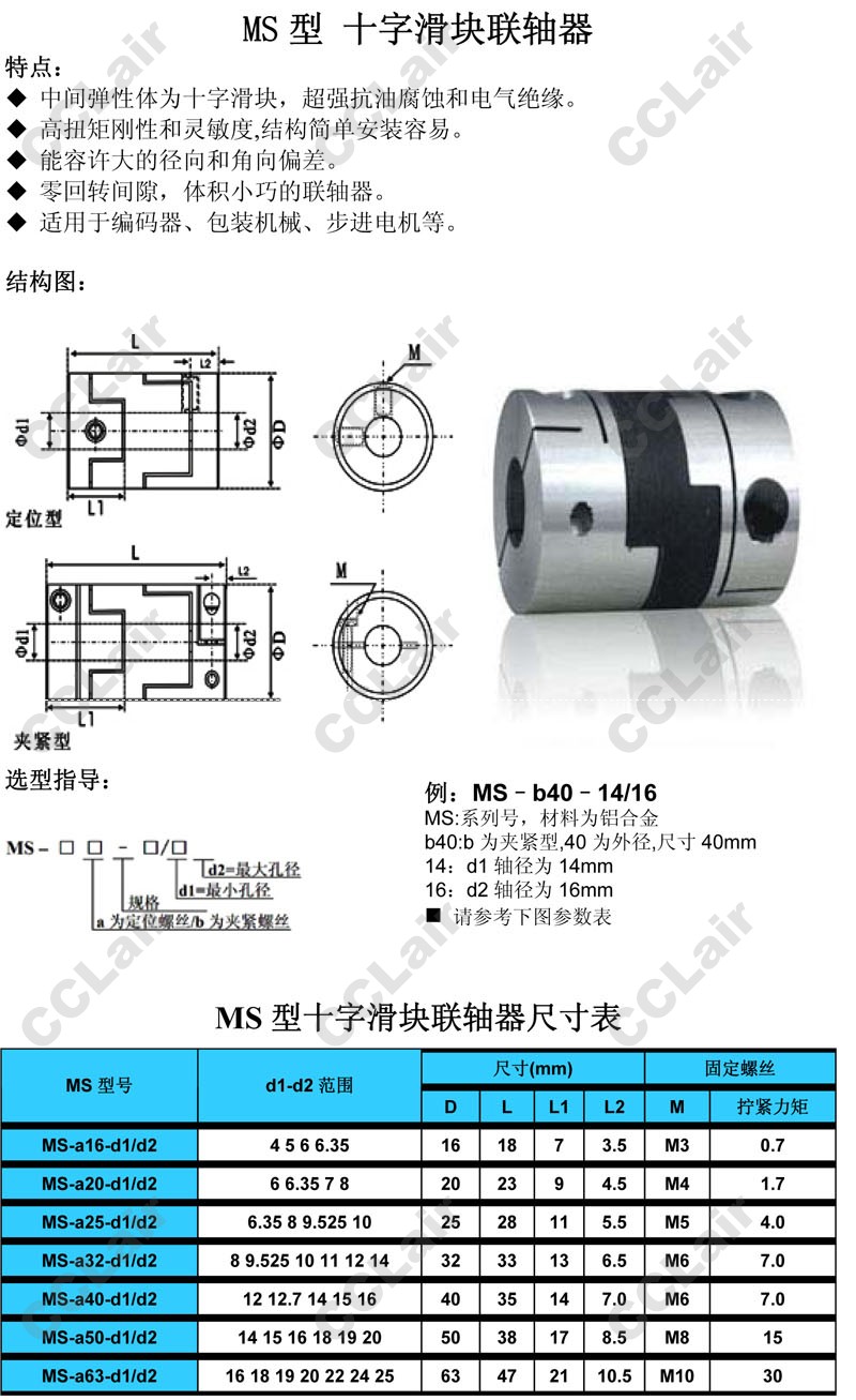 MS-b16,MS-b20,MS-b25,MS-b32,MS-b40,MS-b50,MS-b63,MS-b70,MS-b70-d1/d2,十字滑塊聯(lián)軸器