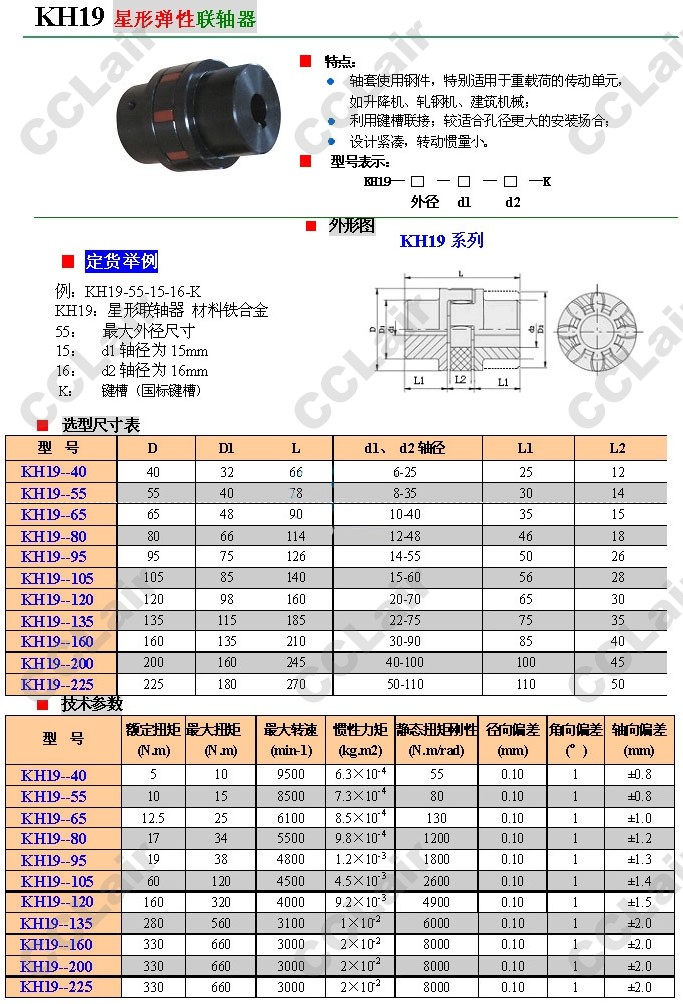KH19-40,KH19-55,KH19-65,KH19-80,KH19-95,KH19-105,KH19-120,KH19-200,KH19-225,星形彈性聯(lián)軸器