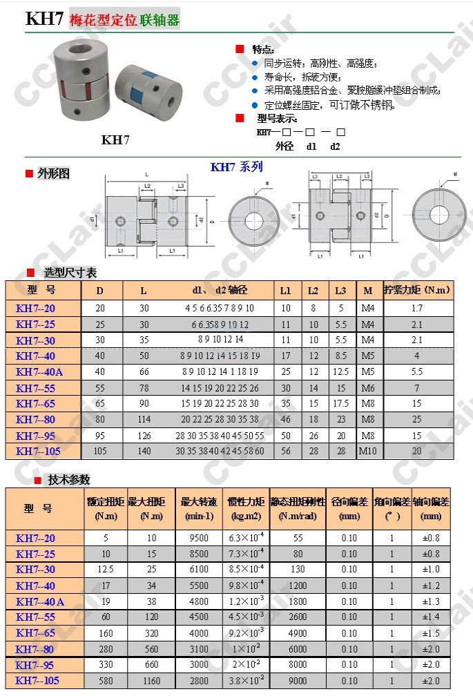 KH7-20,KH7-25,KH7-30,KH7-40,KH7-40A,KH7-55,KH7-65,KH7-80,KH7-95,KH7-105,梅花型定位聯(lián)軸器
