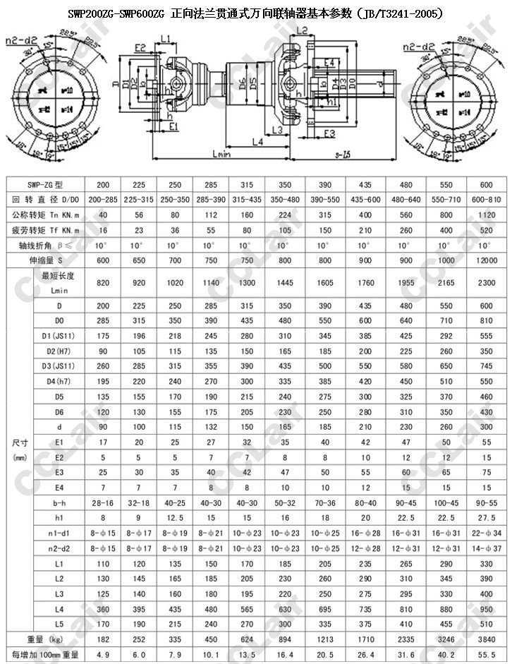 SWP200ZG,SWP250ZG,SWP285ZG,SWP315ZG,SWP350ZG,SWP435ZG,SWP480ZG,SWP550ZG,反向貫通式萬(wàn)向聯(lián)軸器