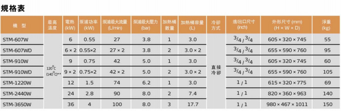 詳細(xì)信息 STM-607W,STM-607WD,STM-910W,STM-910WD,STM-1220W,STM-2440W,STM-3650W,水式模具控溫機(jī)