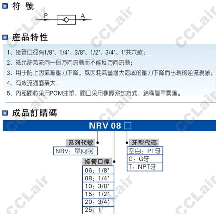 NRV06-T,NRV08-T,NRV10-T,NRV15-T,NRV20-T,NRV25-T,NRV06-G,NRV08-G,NRV10-G,NRV15-G,NRV20-G,NRV25-G,單向閥