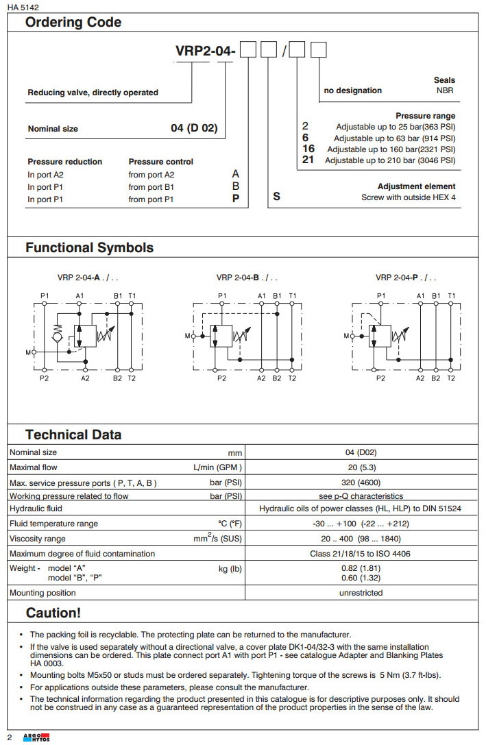 VRP2-04-AS/2,VRP2-04-AS/6,VRP2-04-BS/2,VRP2-04-BS/6,VRP2-04-PS/16,VRP2-04-PS/21,ARGO直動(dòng)式減壓閥