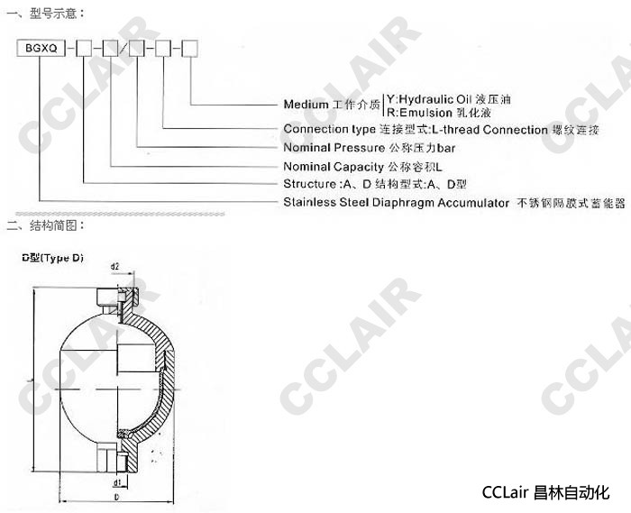 BGXQ-D-0.07/15,BGXQ-D-0.07/15,BGXQ-D-0.25/18,BGXQ-D-0.25/18,不銹鋼隔膜式蓄能器
