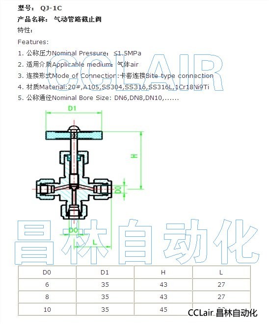 QJ-1C,氣動管路截止閥