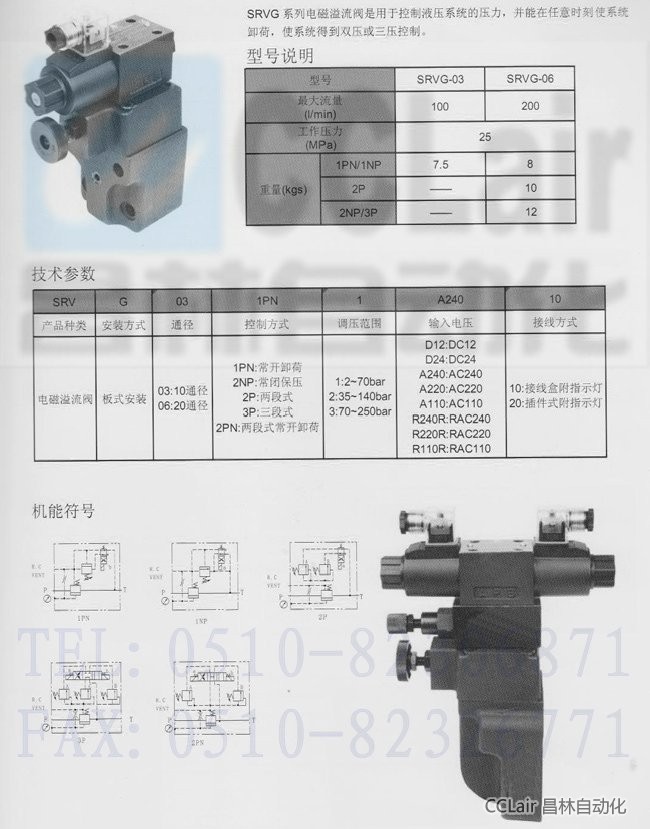 SRVG-03,SRVG-06,SRVG-03-1PN,SRVG-03-2NP,SRVG-03-2P,SRVG-03-3P,SRVG-03-2PN,電磁溢流閥