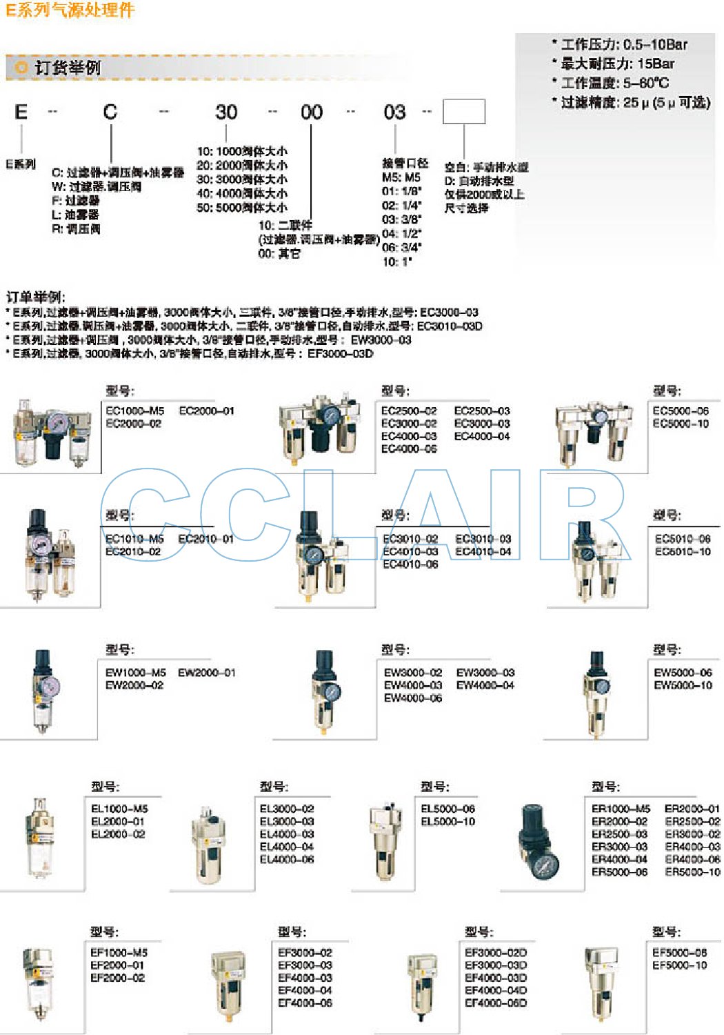 EF1000-M5,EF2000-01,EF3000-02,EF4030-03,EF1040-04,EF2060-06,EF1100-10,過濾器
