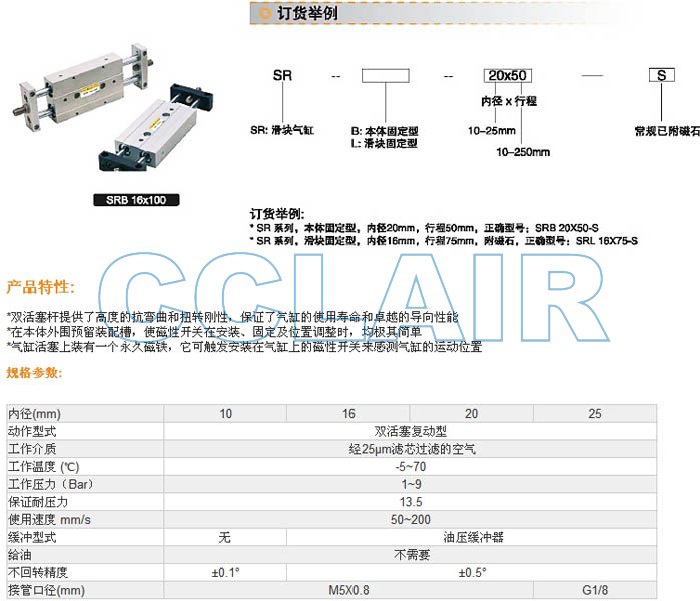詳細(xì)信息 SRB10X50,SRL10X50,SRB16X50,SRL16X50,SRB20X50,SRL20X50,SRB25X50,SRL25X50,導(dǎo)桿氣缸