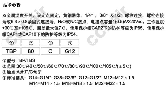TBS50A,TBP50A,TBP30A,TBP40A,TBP60A,TBP70A,TBP80A,TBP90A,TBS90A,TBS100A,TBS105A,雙金屬溫度開關