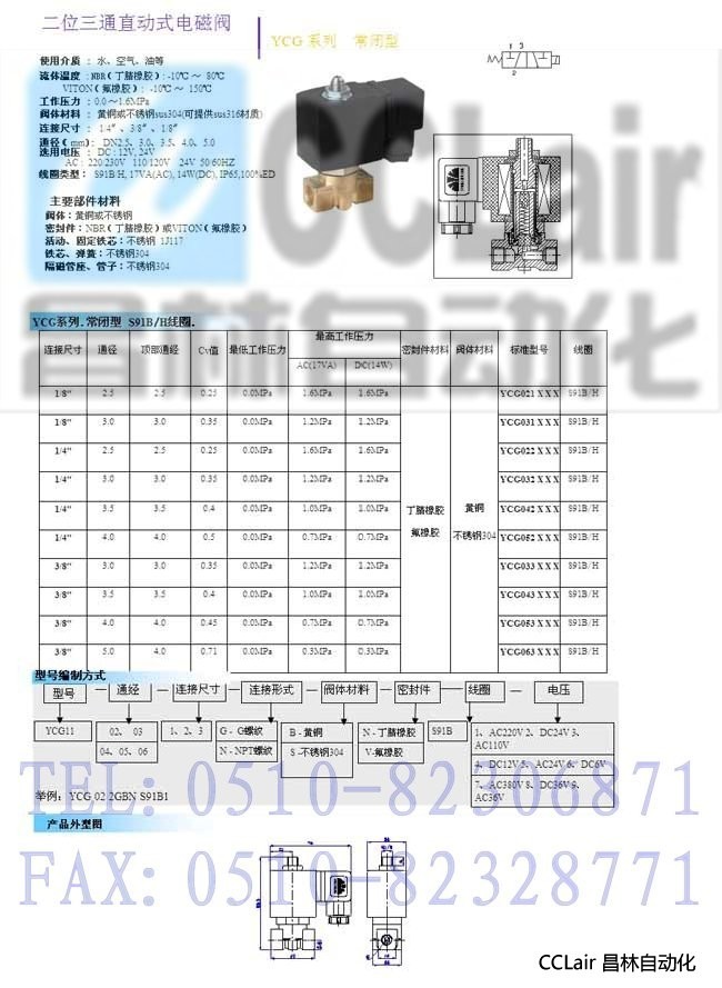 YCG11021,YCG11022,YCG11023,YCG11031,YCG11032,二位三通直動式電磁閥