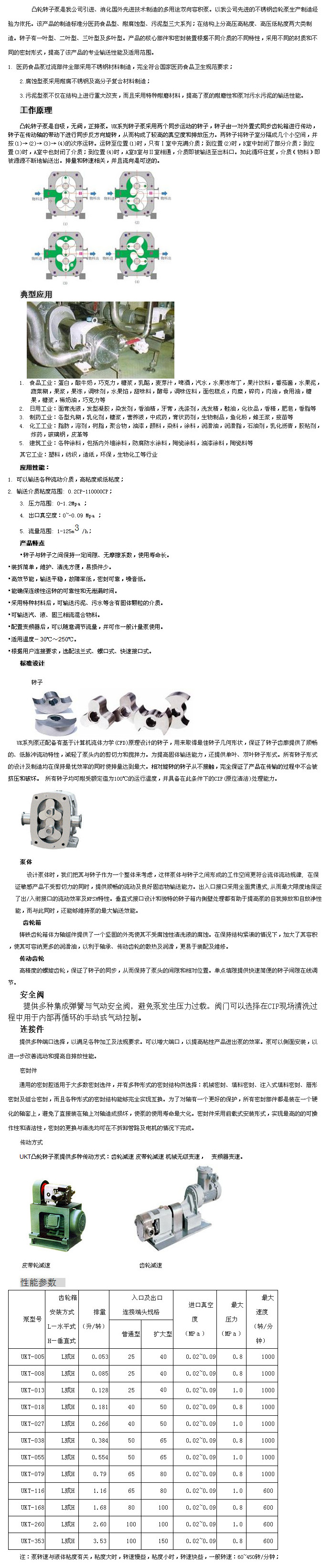 UKT-005,UKT-008,UKT-013,UKT-018,UKT-027,UKT-038,UKT-055,UKT-079,UKT-116,UKT-168,UKT-260,UKT-353,凸輪轉(zhuǎn)子泵