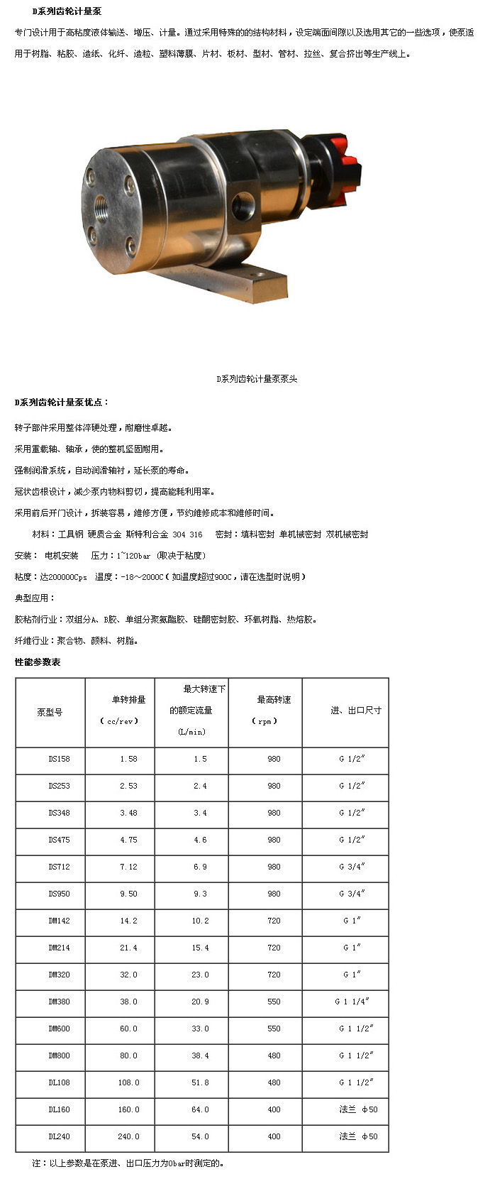 DS158,DS253,DS348,DS475,DS712,DS950,DM142,DM214,DM320,DM380,DM600,DM800,DL108,DL160,DL240,齒輪計量泵
