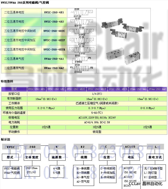 詳細(xì)信息 UVSC-260-4E1,UVSC-260-4E2,UVSC-260-4E2C,UVSC-260-4E2P,UVSC-260 4E2R,電磁閥