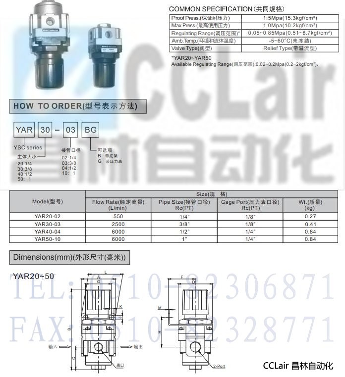 YAR20-02,YAR30-03,YAR40-04,YAR50-10,減壓閥