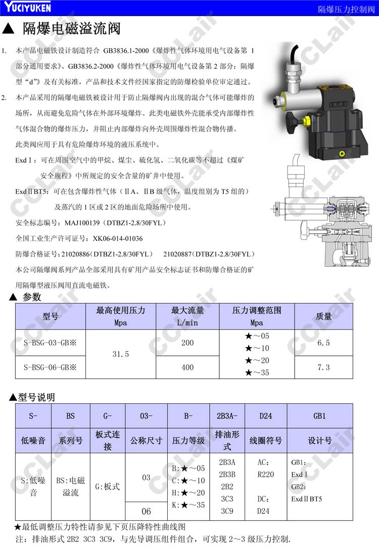 S-BSG-03,S-BSG-06,S-BSG-03-B-2B3A-D24GB1,S-BSG-03-H-3C9-R220GB2,隔爆電磁溢流閥