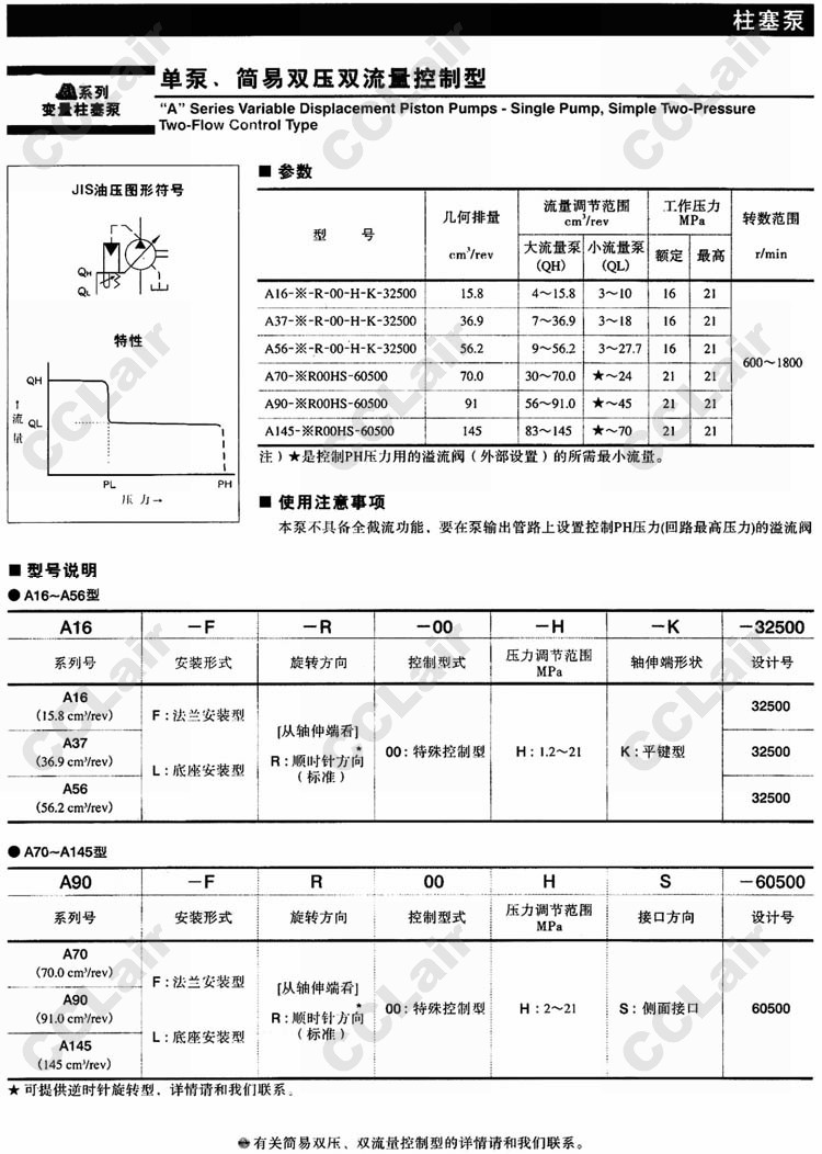 A16,A37,A56,A70,A90,A145,A16-F-R-00-H-K-32500,A70-FR00HS-60500,變量柱塞泵 |