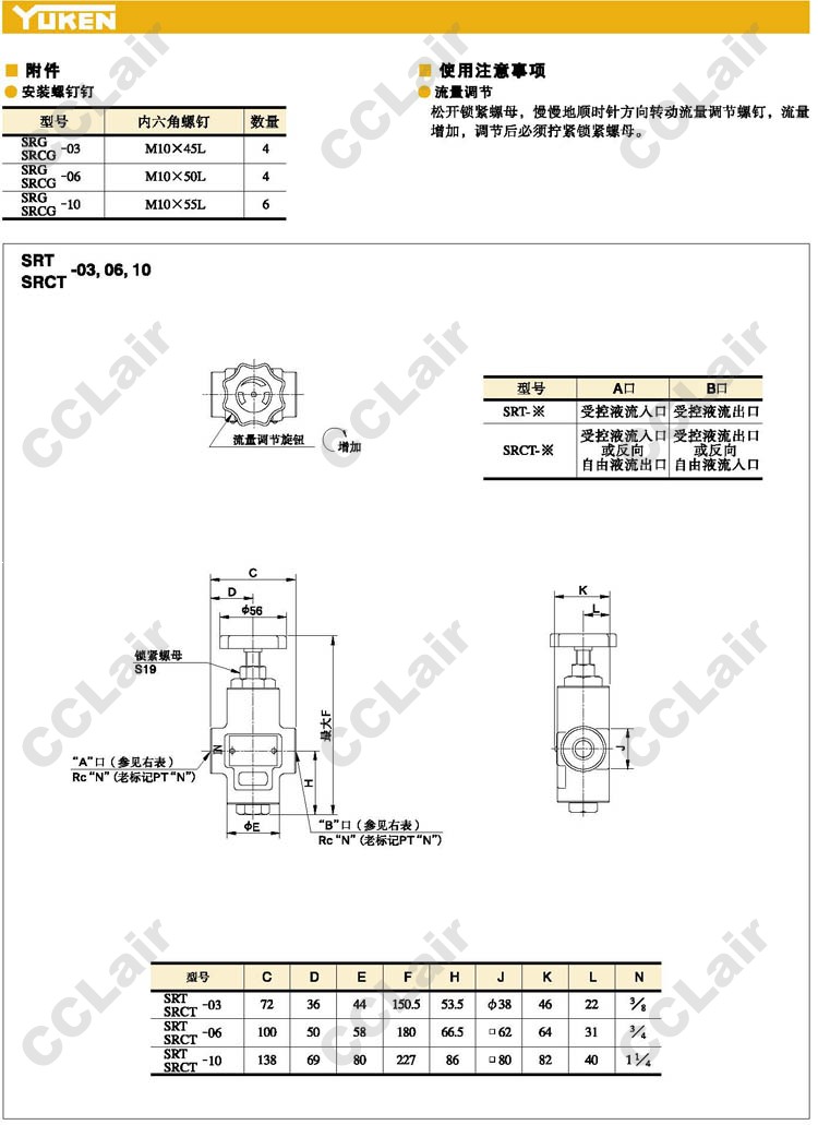 SRT-03-50,SRT-06-50,SRT-10-50,SRCT-03-50,SRCT-06-50,SRCT-10-50,節(jié)流閥,YUCIYUKEN榆次油研